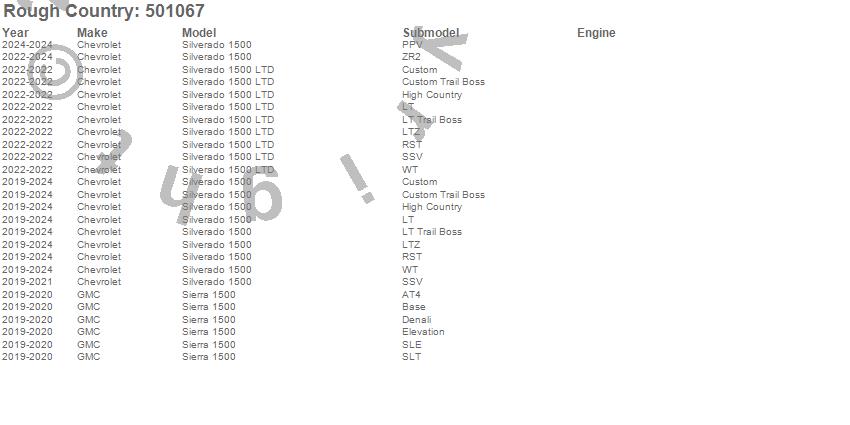 Below is an abbreviated list of applications for the Lifted N3 Struts.Sierra 1500, Silverado 1500, Silverado 1500 LTD, Chevrolet, GMC, 2025, 2024, 2023, 2022, 2021, 2020, 2019