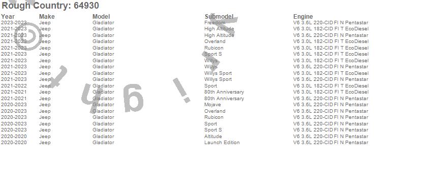 Below is an abbreviated list of applications for the Suspension Lift Kit.Gladiator, Jeep, 2023, 2022, 2021, 2020