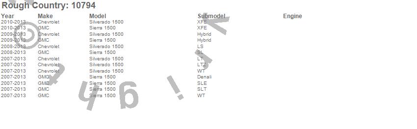 Below is an abbreviated list of applications for the Skid Plate.Sierra 1500, Silverado 1500, Chevrolet, GMC, 2013, 2012, 2011, 2010, 2009, 2008, 2007