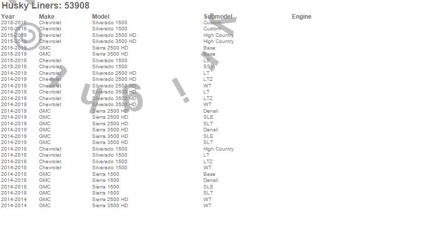 Below is an abbreviated list of applications for the X-act Contour Floor Liner.Sierra 1500, Sierra 2500 HD, Sierra 3500 HD, Silverado 1500, Silverado 2500 HD, Silverado 3500 HD, Chevrolet, GMC, 2019, 2018, 2017, 2016, 2015, 2014