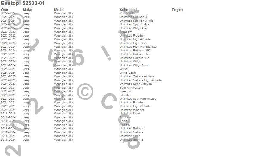 Below is an abbreviated list of applications for the Windjammer 4-Way Cross Car Bow.Wrangler, Wrangler (JL), Jeep, 2026, 2024, 2023, 2022, 2021, 2020, 2019, 2018
