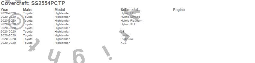 Below is an abbreviated list of applications for the SeatSaver Custom Seat Cover.Grand Highlander, Highlander, Toyota, 2025, 2024, 2020