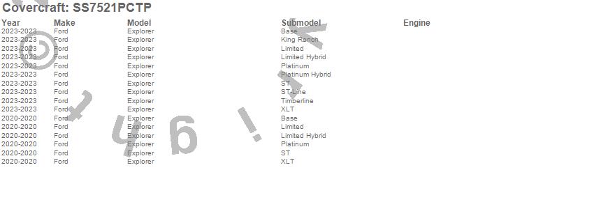 Below is an abbreviated list of applications for the SeatSaver Custom Seat Cover.Explorer, Ford, 2025, 2024, 2023, 2020