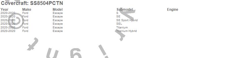 Below is an abbreviated list of applications for the SeatSaver Custom Seat Cover.Escape, Ford, 2020