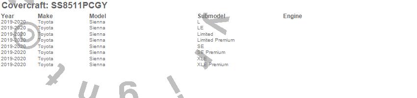 Below is an abbreviated list of applications for the SeatSaver Custom Seat Cover.Sienna, Toyota, 2020, 2019