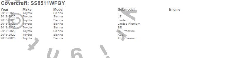 Below is an abbreviated list of applications for the SeatSaver Custom Seat Cover.Sienna, Toyota, 2020, 2019