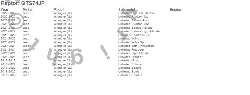 Brand: RaptorPart Number: GTS74JPNerf/Step Bar Type: Black TexturedUPC: 813443025567