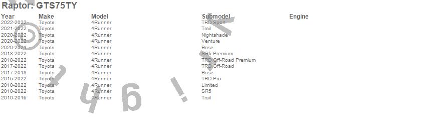 Below is an abbreviated list of applications for the RT Gen 2 Steps.4Runner, Toyota, 2022, 2021, 2020, 2019, 2018, 2017, 2016, 2015, 2014, 2013, 2012, 2011, 2010
