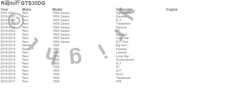 Brand: RaptorPart Number: GTS30DGNerf/Step Bar Type: Black TexturedUPC: 813443027165