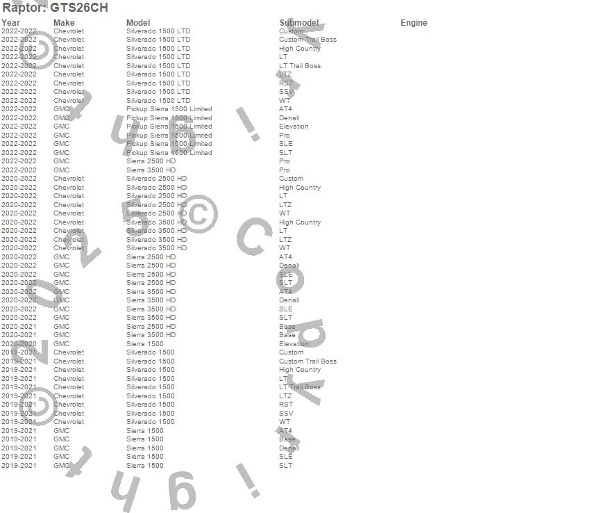 Brand: RaptorPart Number: GTS26CHNerf/Step Bar Type: Black TexturedUPC: 813443025482