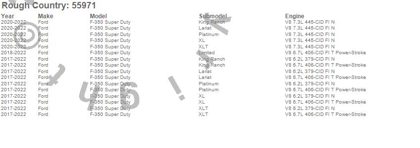 Below is an abbreviated list of applications for the Suspension Lift Kit w/V2 Shocks.F-350 Super Duty, Ford, 2022, 2021, 2020, 2019, 2018, 2017