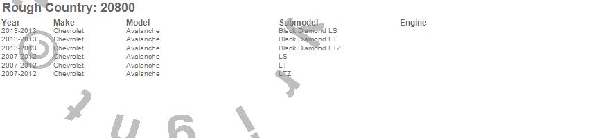 Below is an abbreviated list of applications for the Crossmember Box Kit.Avalanche, Chevrolet, 2013, 2012, 2011, 2010, 2009, 2008, 2007