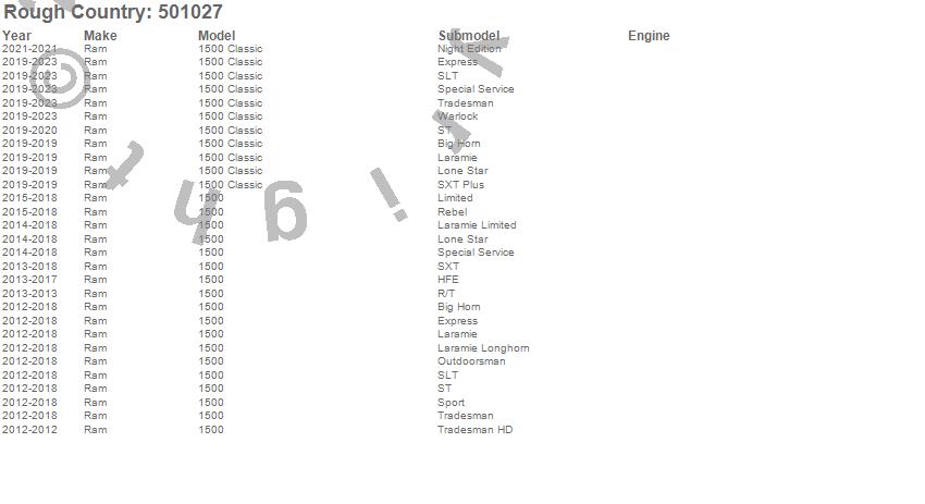 Brand: Rough CountryPart Number: 501027Suspension Strut Assembly Type: 4 in.UPC: 843030170103