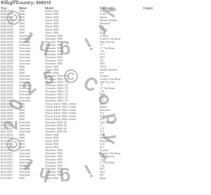 Below is an abbreviated list of applications for the Adjustable Vertex Shocks.Pickup Sierra 1500 Limited, Sierra 1500, Silverado 1500, Silverado 1500 LTD, Silverado 3500 HD, Chevrolet, GMC, 2025, 2024, 2023, 2022, 2021, 2020, 2019