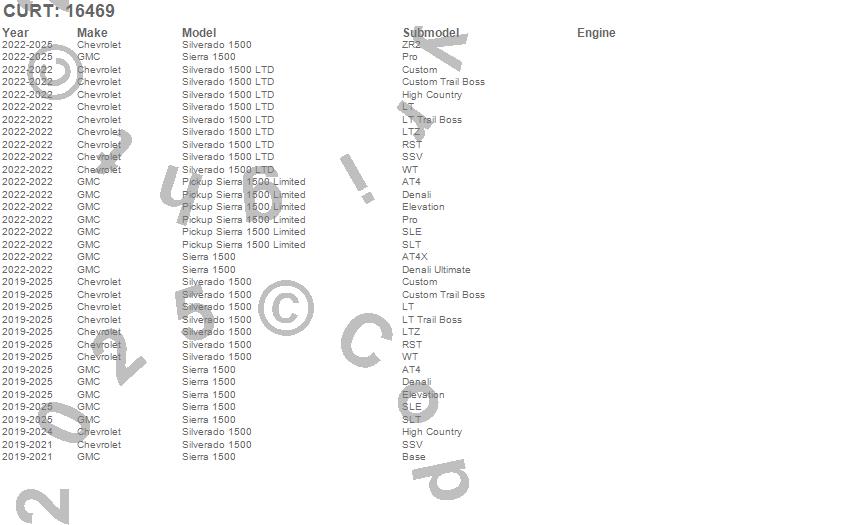 Below is an abbreviated list of applications for the Fifth Wheel Custom Bracket Kit.Pickup Sierra 1500 Limited, Sierra 1500, Silverado 1500, Silverado 1500 LTD, Chevrolet, GMC, 2026, 2025, 2024, 2023, 2022, 2021, 2020, 2019