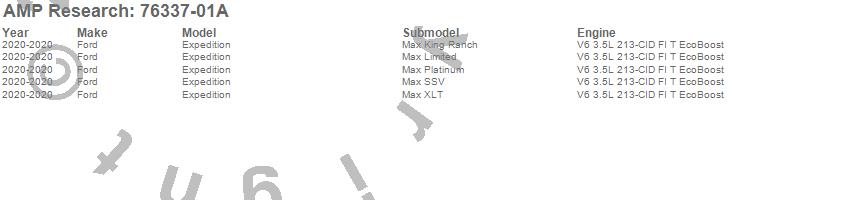 Below is an abbreviated list of applications for the PowerStep.Expedition, Ford, 2020