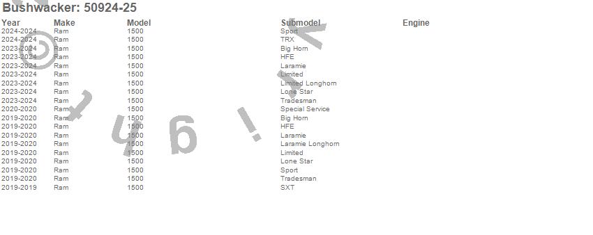 Brand: BushwackerPart Number: 50924-25Fender Flare Type: 4 pc. - Front Tire Coverage 2.6 in. - Front Height 4.75 in. - Rear Tire Coverage 2 in - Rear Height 4.75 in. - Ivory Pearl Tri-CoatUPC: 090689123817