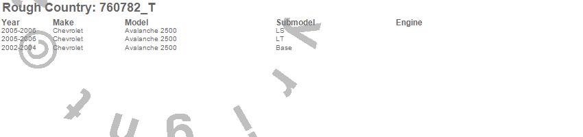 Below is an abbreviated list of applications for the V2 Monotube Shocks.Avalanche 2500, Chevrolet, 2006, 2005, 2004, 2003, 2002