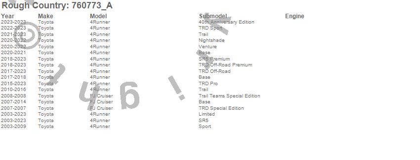 Below is an abbreviated list of applications for the V2 Monotube Shocks.4Runner, FJ Cruiser, Toyota, 2024, 2023, 2022, 2021, 2020, 2019, 2018, 2017, 2016, 2015, 2014, 2013, 2012, 2011, 2010, 2009, 2008