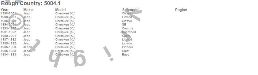 Below is an abbreviated list of applications for the CV Drive Shaft.Cherokee (XJ), Jeep, 2001, 2000, 1999, 1998, 1997, 1996, 1995, 1994, 1993, 1992, 1991, 1990, 1989, 1988, 1987, 1986, 1985, 1984