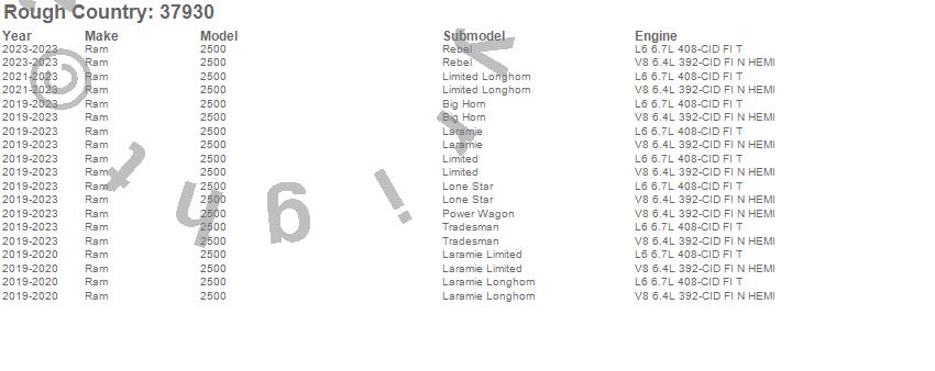 Below is an abbreviated list of applications for the Suspension Lift Kit.2500, Ram, 2023, 2022, 2021, 2020, 2019