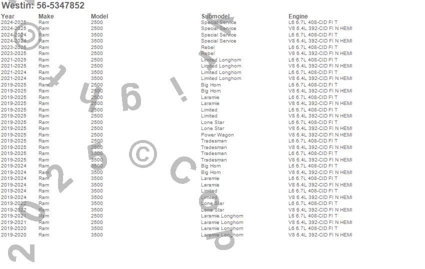 Brand: WestinPart Number: 56-5347852Nerf/Step Bar Type: Textured Black - Wheel To WheelUPC: 707742099346
