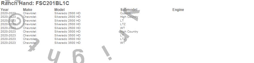 Brand: Ranch HandPart Number: FSC201BL1CBumper- Front Type: Retains Factory Tow Hooks and Fog Lights - w/ Assist Front Park - w/Camera CutoutUPC: 848917006735