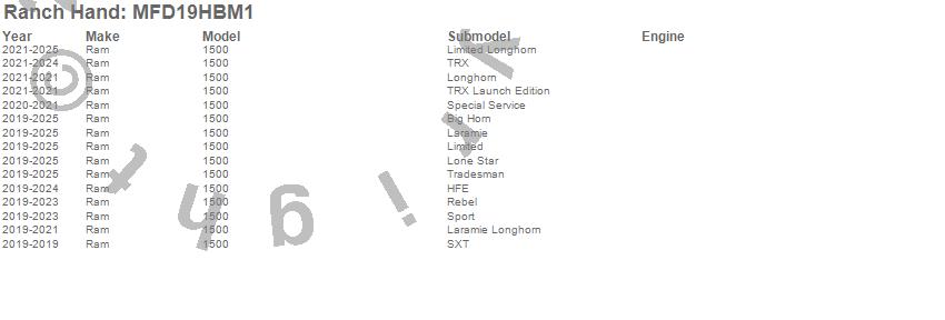 Brand: Ranch HandPart Number: MFD19HBM1Bumper- Front Type: Retains Factory Fog Lights - Front Parking Sensors - w/Grille GuardUPC: 848917006407