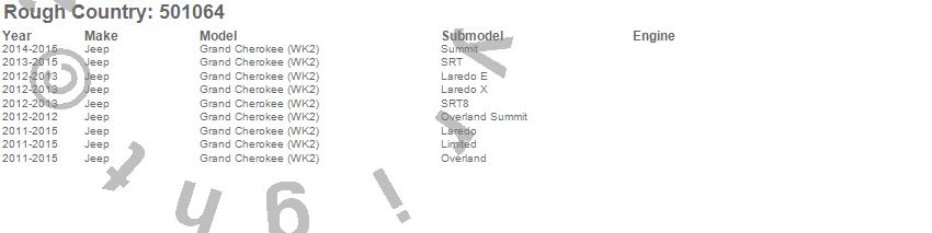 Below is an abbreviated list of applications for the Lifted N3 Struts.Grand Cherokee (WK2), Jeep, 2015, 2014, 2013, 2012, 2011