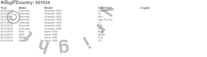 Brand: Rough CountryPart Number: 501034Suspension Strut Assembly Type: 5 in. LiftUPC: 843030170653