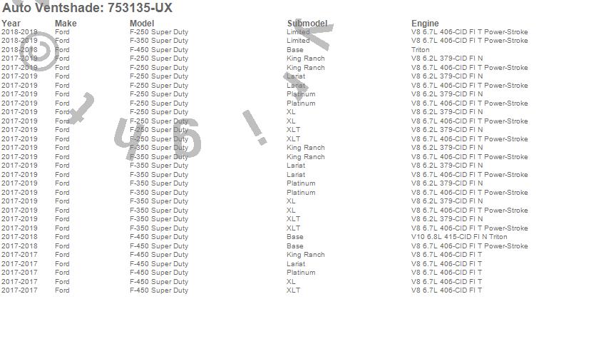 Below is an abbreviated list of applications for the Aeroskin LightShield Hood Protector.F-250 Super Duty, F-350 Super Duty, F-450 Super Duty, Ford, 2019, 2018, 2017