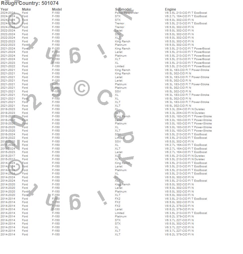 Below is an abbreviated list of applications for the Strut Leveling Kit.F-150, Ford, 2025, 2024, 2023, 2022, 2021, 2020, 2019, 2018, 2017, 2016, 2015, 2014