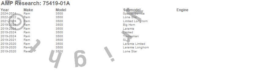 Brand: AMP ResearchPart Number: 75419-01ATruck Step Type: BlackUPC: 815410014833