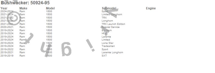 Brand: BushwackerPart Number: 50924-95Fender Flare Type: 4 pc. - Front Tire Coverage 2 in. - Front Height 6.42 in. - Rear Tire Coverage 2.6 in. - Rear Height 5.95 in. - Billet Silver MetallicUPC: 090689000194
