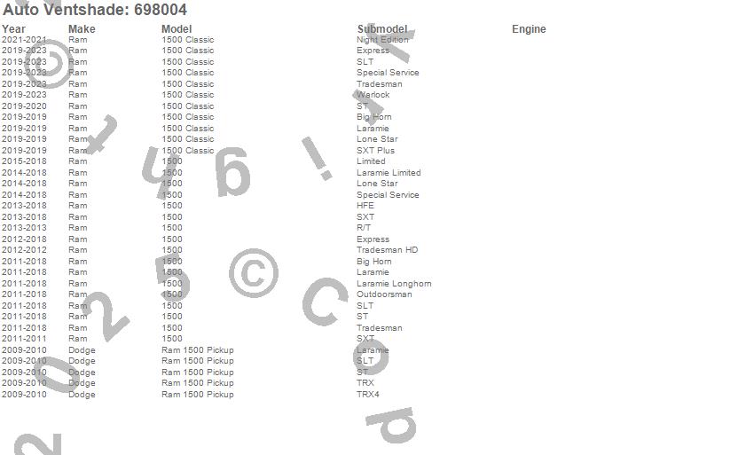 Below is an abbreviated list of applications for the Aerocab Marker Light.1500, 1500 Classic, Ram 1500, Dodge, Ram, 2023, 2022, 2021, 2020, 2019, 2018, 2017, 2016, 2015, 2014, 2013, 2012, 2011, 2010, 2009