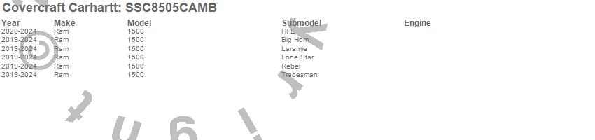 Below is an abbreviated list of applications for the Covercraft Carhartt SeatSaver.1500, Ram, 2024, 2023, 2022, 2021, 2020, 2019