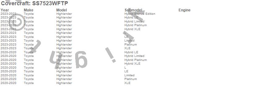 Below is an abbreviated list of applications for the SeatSaver Custom Seat Cover.Grand Highlander, Highlander, Toyota, 2025, 2024, 2023, 2020