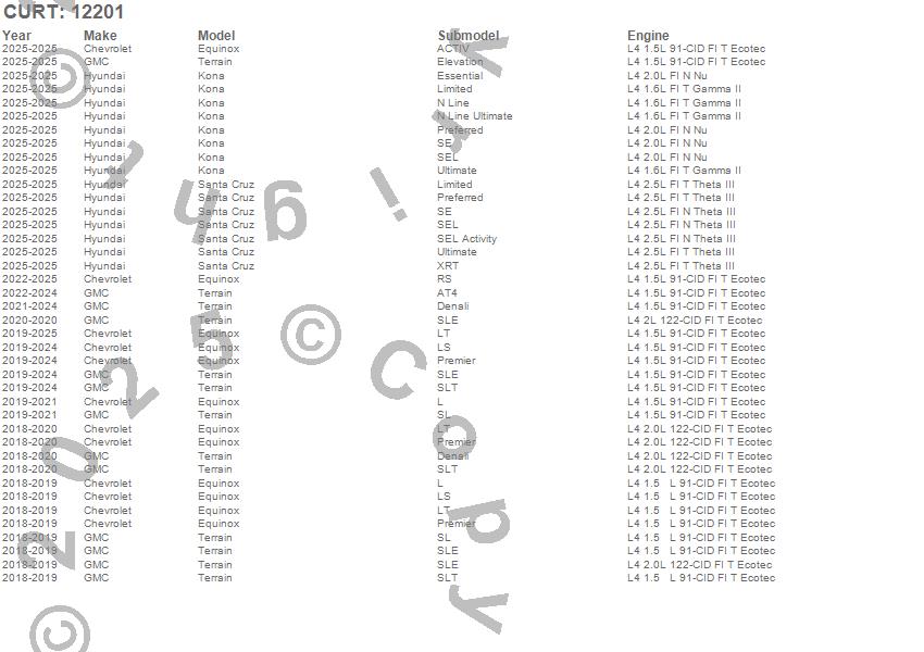 Below is an abbreviated list of applications for the Class II 1.25 in. Receiver Hitch.Equinox, Terrain, Chevrolet, GMC, 2026, 2025, 2024, 2023, 2022, 2021, 2020, 2019, 2018