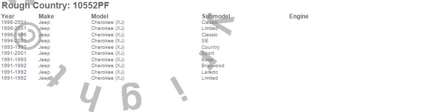 Below is an abbreviated list of applications for the Cold Air Intake.Cherokee (XJ), Jeep, 2001, 2000, 1999, 1998, 1997, 1996, 1995, 1994, 1993, 1992, 1991
