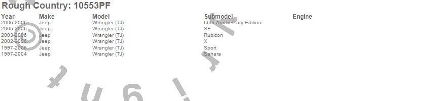 Below is an abbreviated list of applications for the Cold Air Intake.Wrangler (TJ), Jeep, 2006, 2005, 2004, 2003, 2002, 2001, 2000, 1999, 1998, 1997