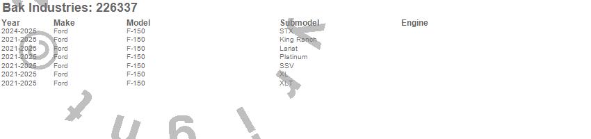 Brand: BAK IndustriesPart Number: 226337Tonneau Cover Type: Black - Aluminum - Gloss Black FinishUPC: 192631033172