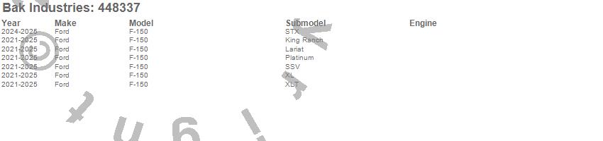 Brand: BAK IndustriesPart Number: 448337Tonneau Cover Type: Black - Aluminum - Matte FinishUPC: 192631033189