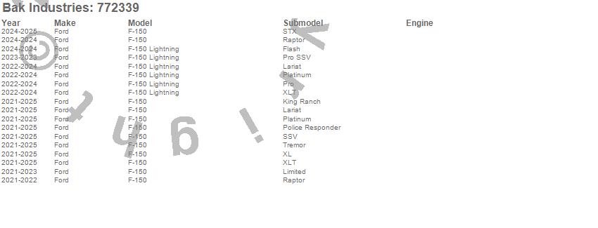 Brand: BAK IndustriesPart Number: 772339Tonneau Cover Type: Black - Fiberglass Covered Aluminum - Textured Black FinishUPC: 192631033110