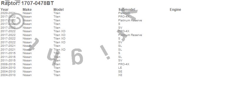 Brand: RaptorPart Number: 1707-0478BTRunning Board Type: 6 in. - Rocker Panel Mount - Black Textured - w/ BracketsUPC: 813443027608