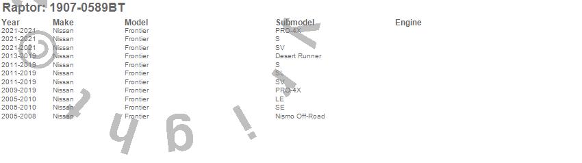 Brand: RaptorPart Number: 1907-0589BTRunning Board Type: Black Textured Aluminum - Rocker Panel MountUPC: 813443027981