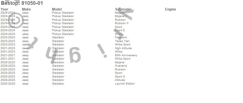 Below is an abbreviated list of applications for the All Weather Trail Cover For Jeep.Gladiator, Pickup Gladiator, Jeep, 2026, 2025, 2024, 2023, 2022, 2021, 2020