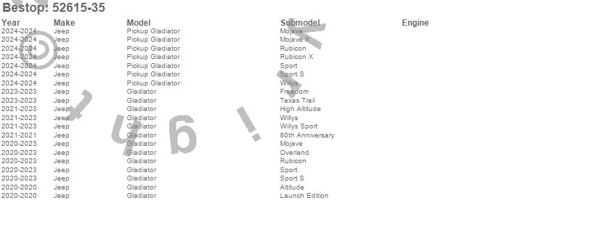 Below is an abbreviated list of applications for the Header Extended Safari Cable Style Bikini Top.Gladiator, Pickup Gladiator, Jeep, 2024, 2023, 2022, 2021, 2020
