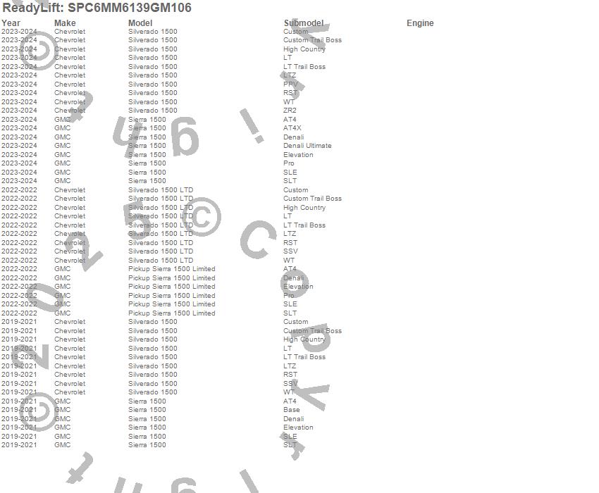 Brand: ReadyLiftPart Number: SPC6MM6139GM106Wheel Spacer Type: 6 Lug - 6MM - [6x139.7]UPC: 885463783482