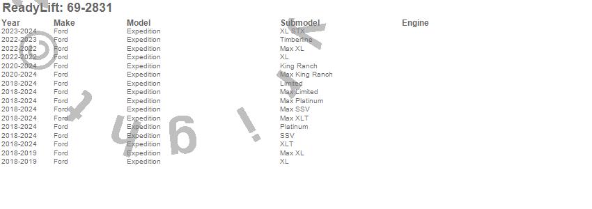 Below is an abbreviated list of applications for the SST Lift Kit.Expedition, Ford, 2024, 2023, 2022, 2021, 2020, 2019, 2018