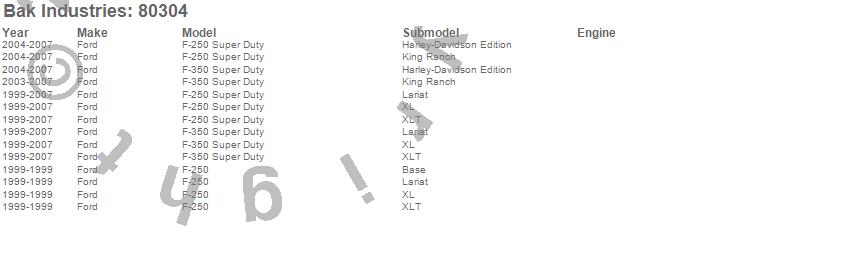 Brand: BAK IndustriesPart Number: 80304Tonneau Cover Type: Black - Vinyl Top w/ Aluminum Underside - Matte Black FinishUPC: 192631032229